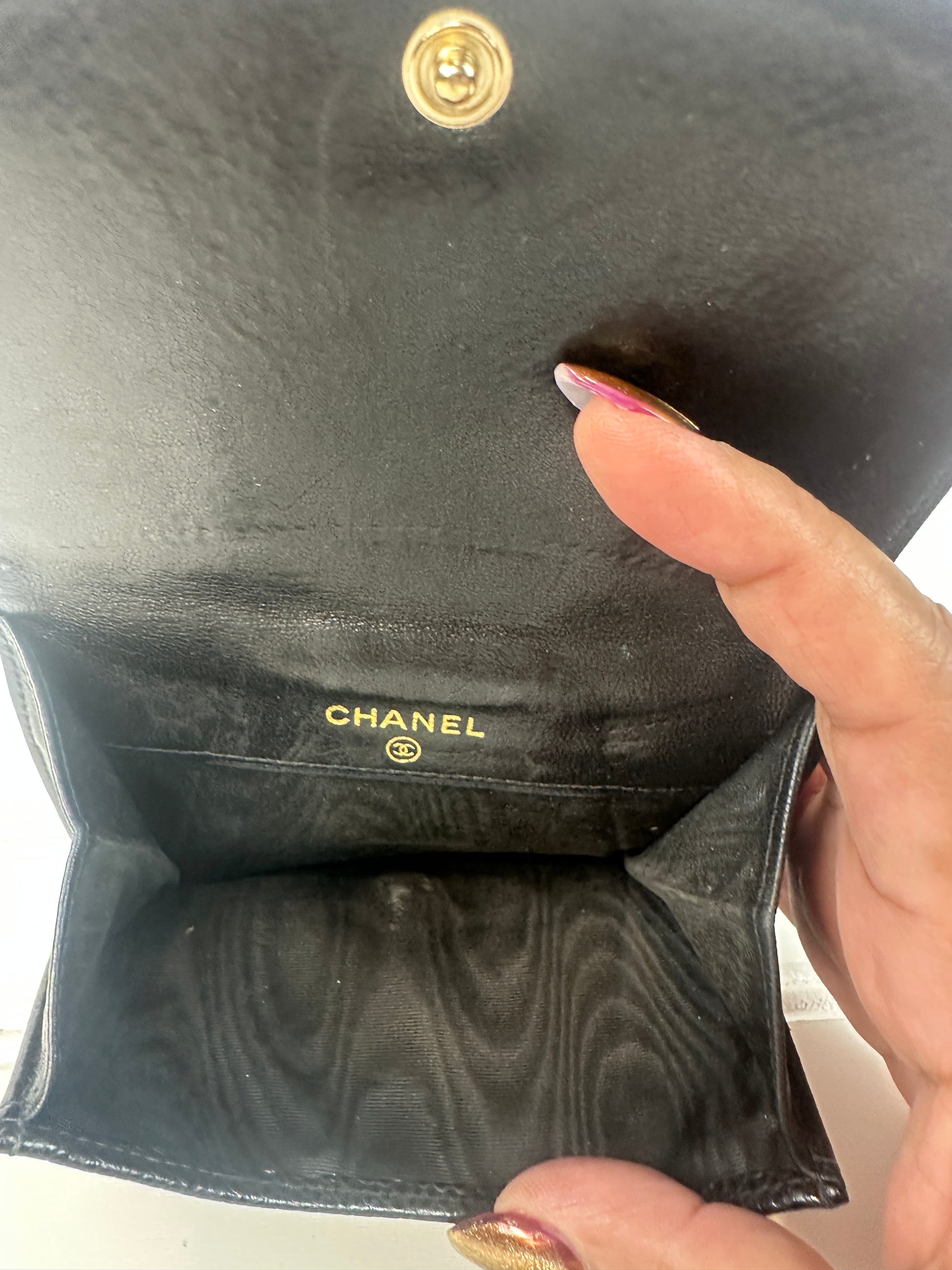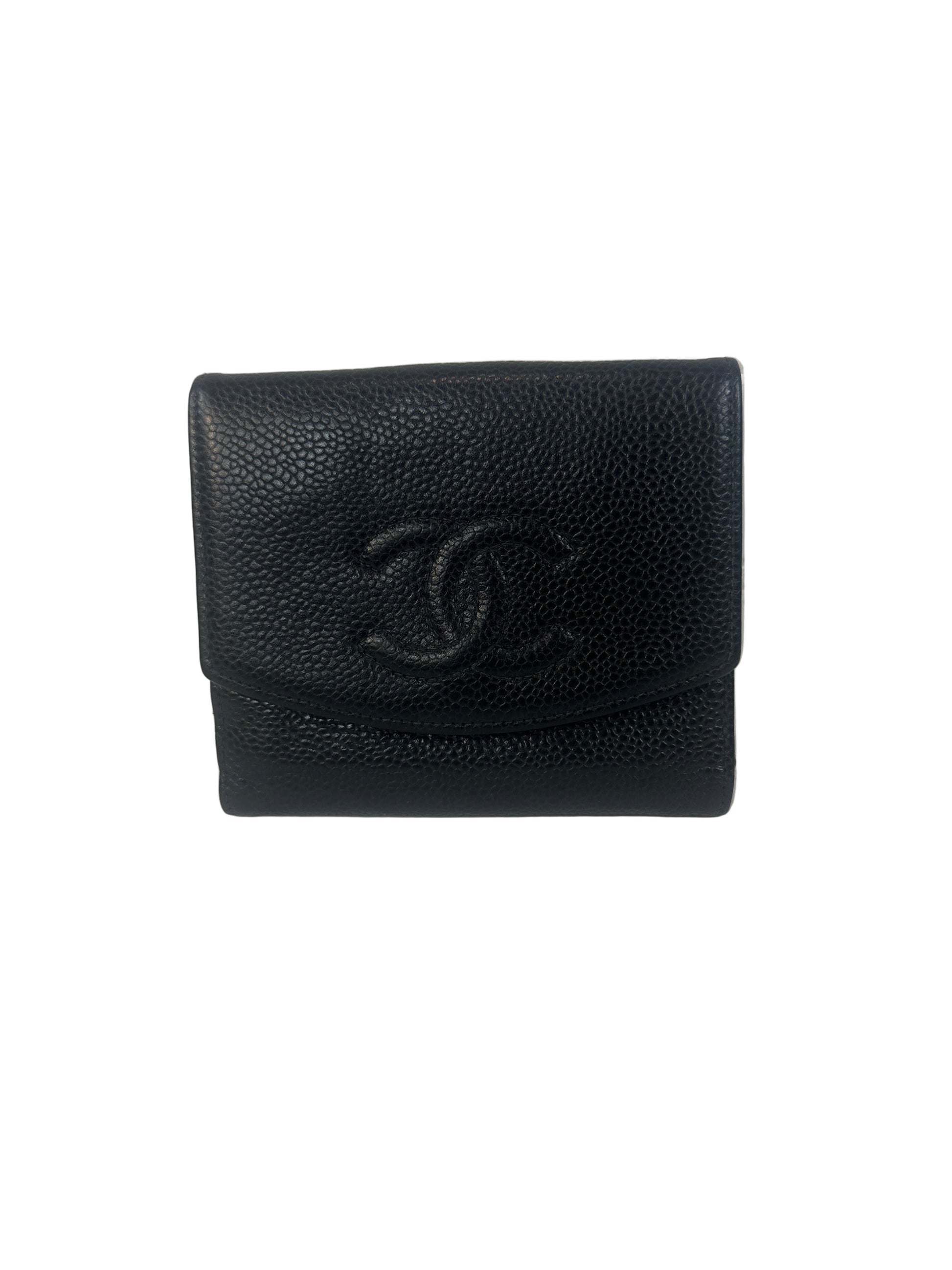 Elevate your everyday essentials with this authentic pre-owned CHANEL bifold wallet in luxurious black caviar leather. Featuring the iconic Coco brand emblem, this timeless piece combines sophisticated design with practical functionality. The supple caviar texture resists scratches while maintaining its lustrous finish, making it a durable investment for the discerning collector. Multiple card slots and bill compartments keep your essentials organized in style. Own a piece of CHANEL heritage at a fraction of the original price—the perfect blend of luxury and value.