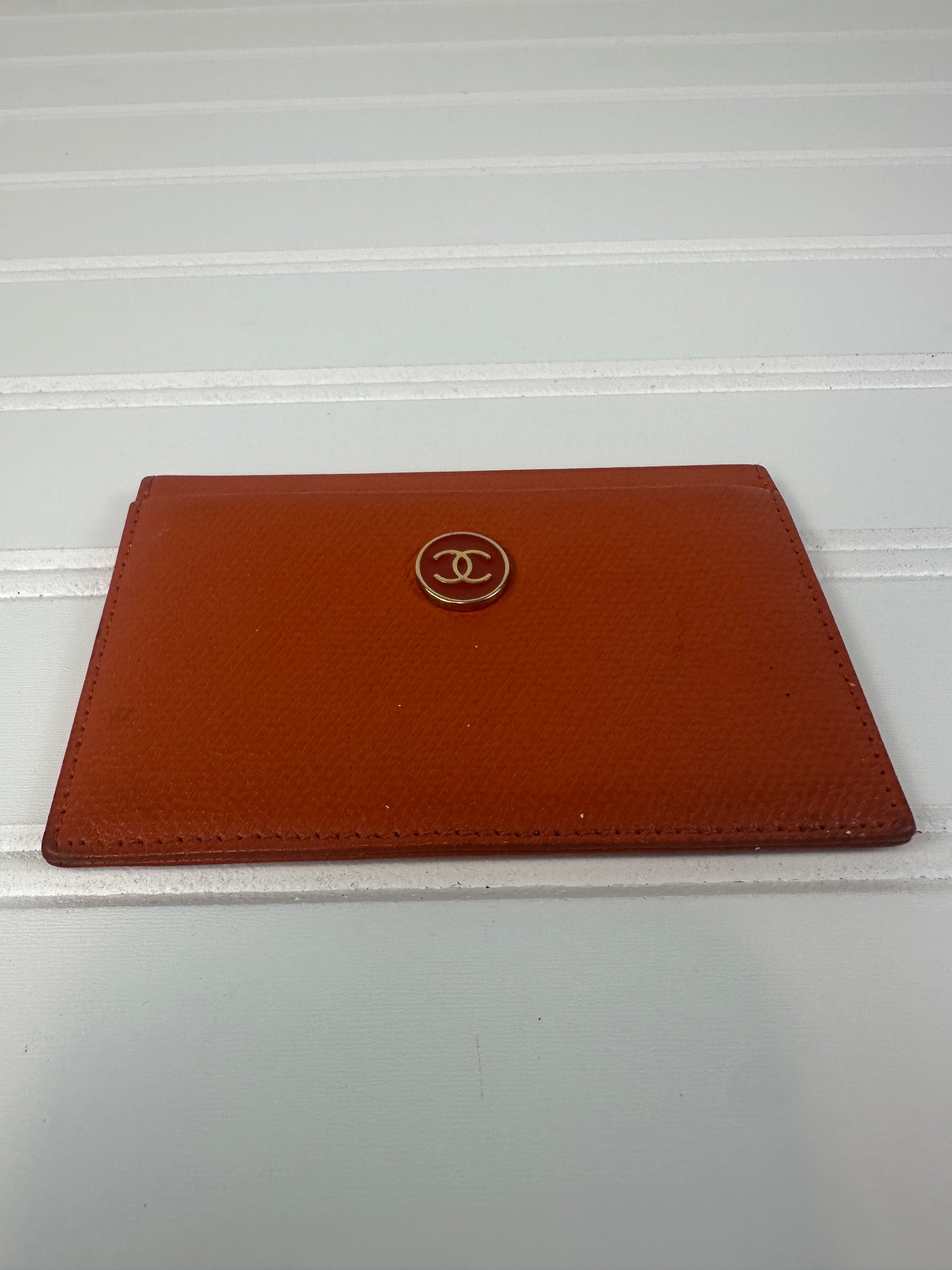 Elevate your everyday essentials with this authentic pre-owned CHANEL Coco Button Card case in vibrant orange caviar leather. This timeless accessory combines luxury craftsmanship with practical functionality, featuring the iconic Coco button design that defines CHANEL's heritage. The durable caviar leather develops a beautiful patina over time, adding character to your collection. Perfect for organizing cards and coins while making a sophisticated statement, this piece offers the prestige of owning a genuine CHANEL treasure at a more accessible price point. A smart investment for vintage luxury enthusiasts.