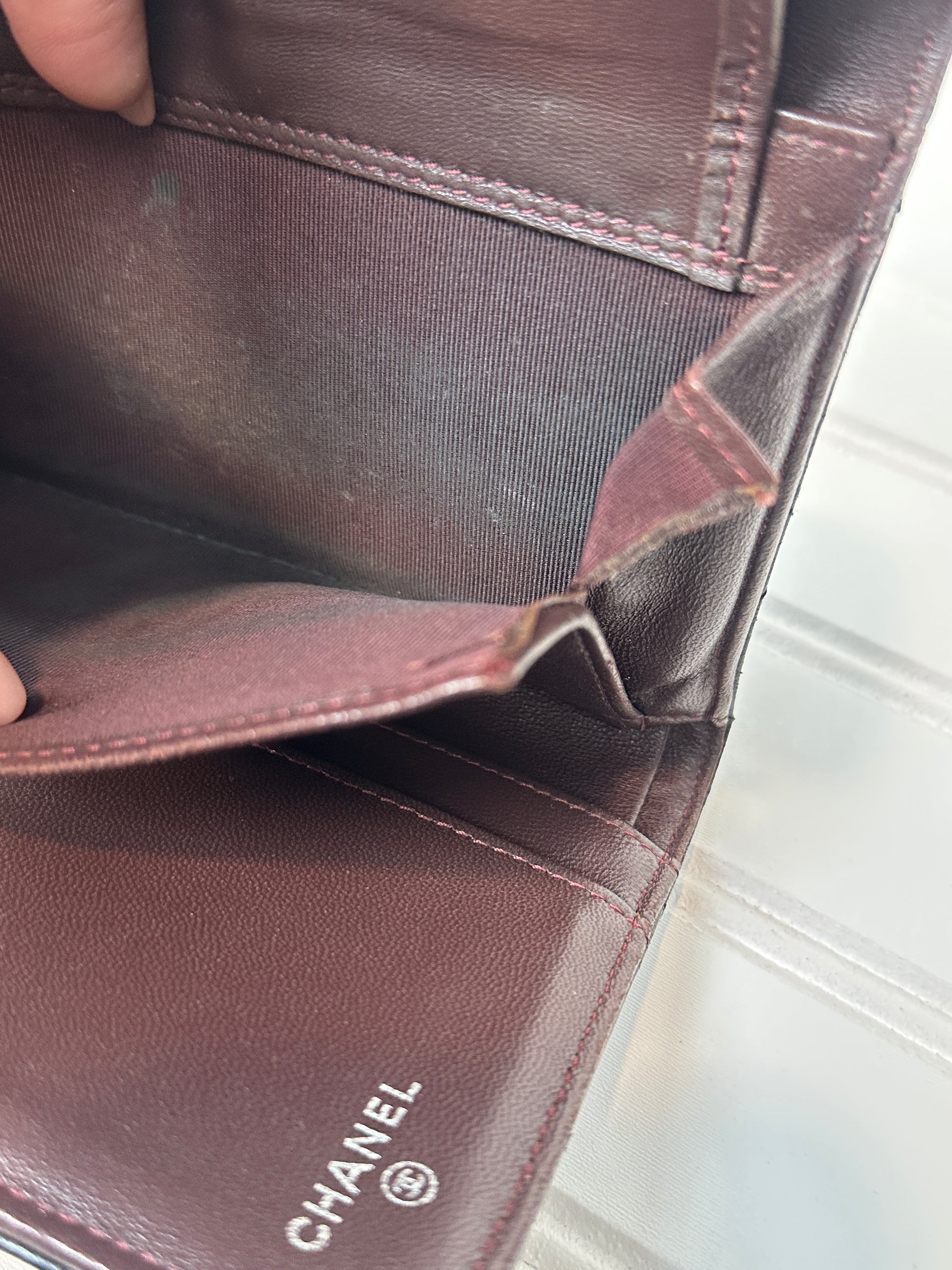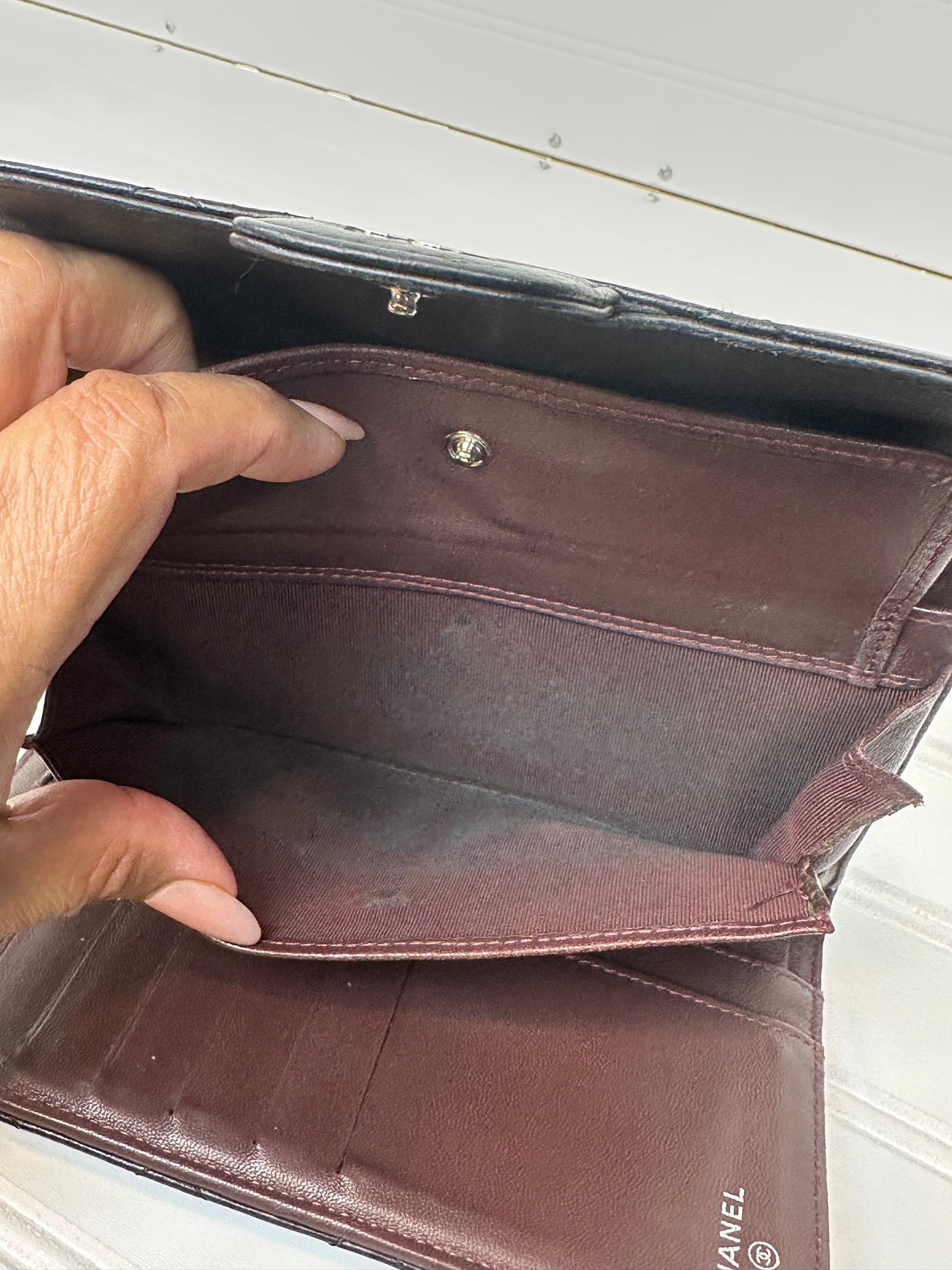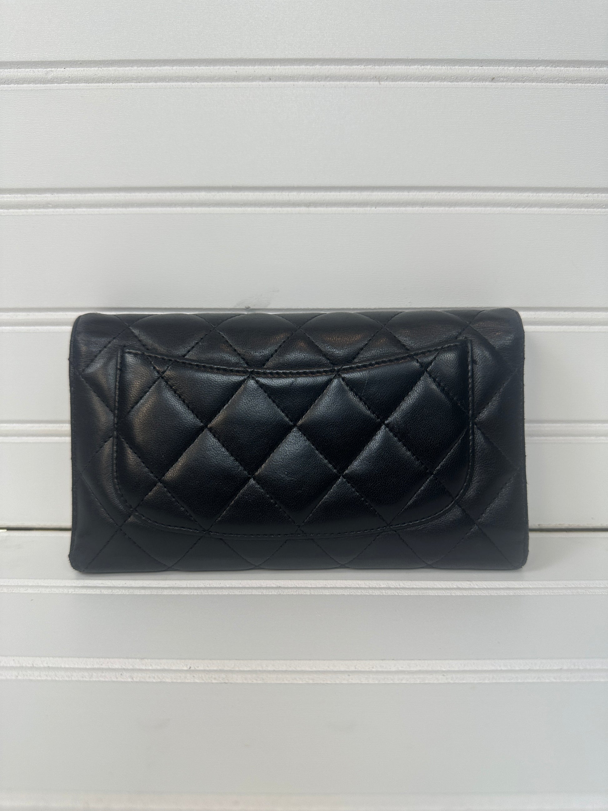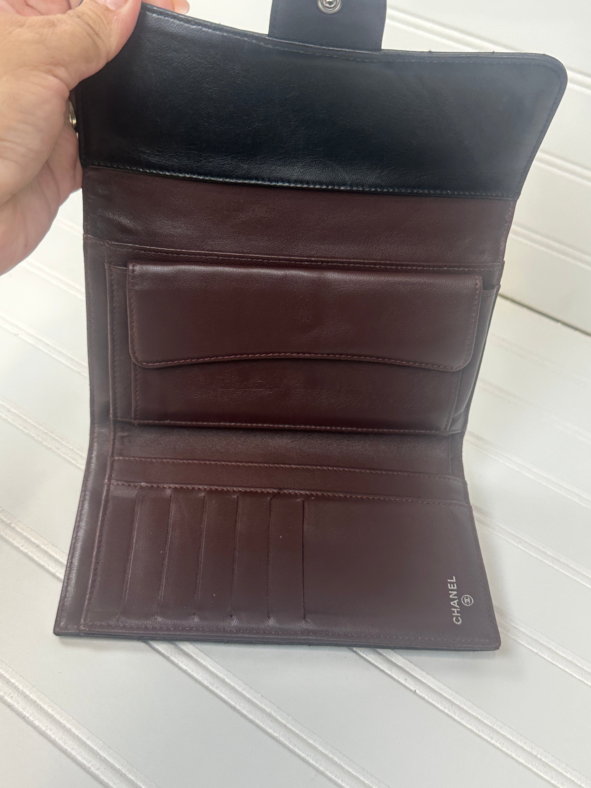 Pre-owned CHANEL Lambskin Matelasse Bi-fold Long Black Wallet