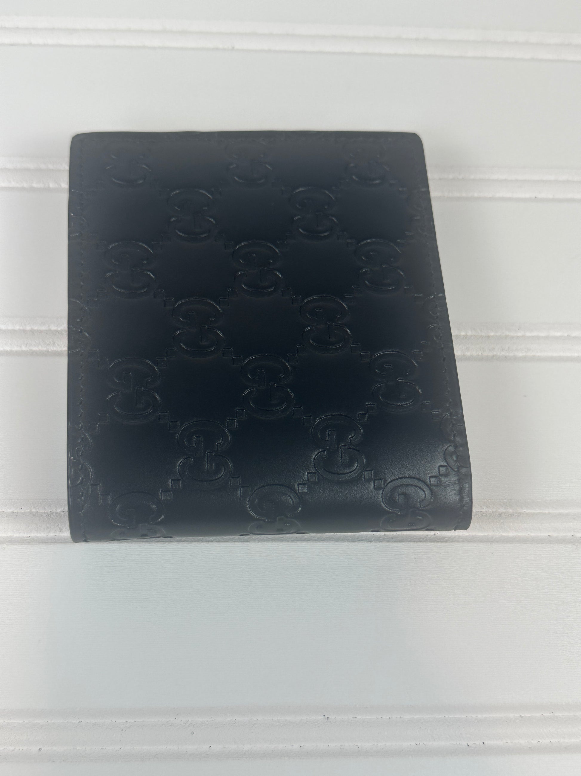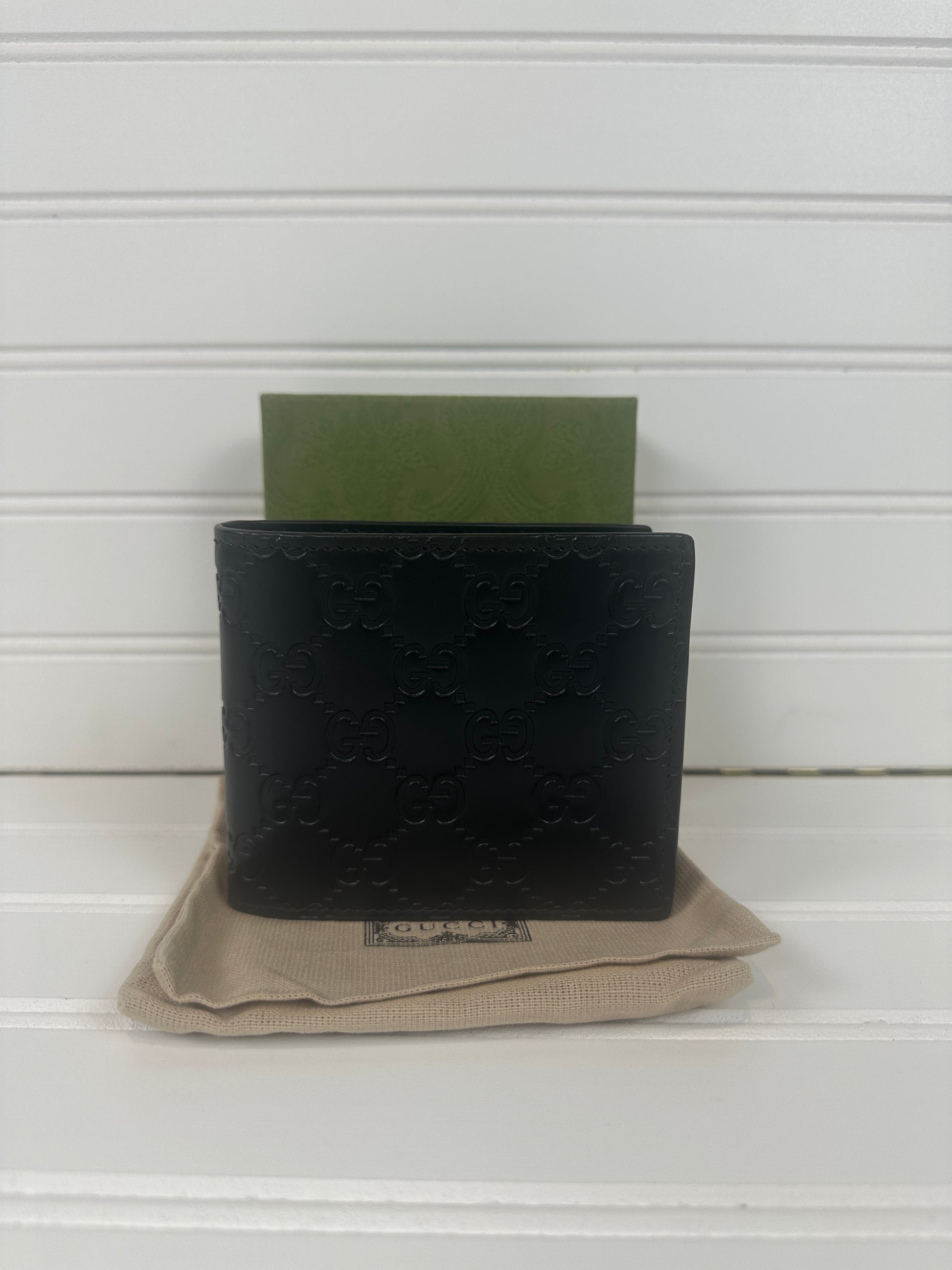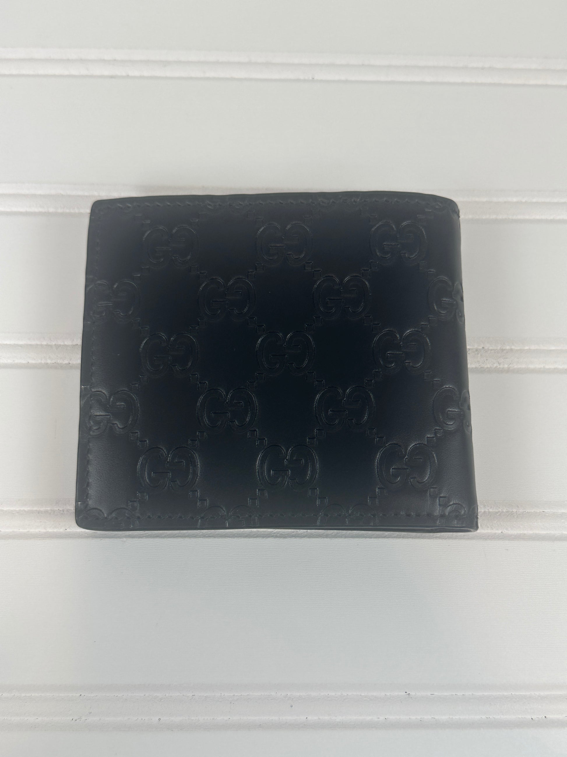 Elevate your everyday carry with this authentic pre-owned GUCCI GG Emblem bi-fold wallet. Crafted from supple black leather, it showcases the iconic interlocking GG logo that defines luxury. The compact bi-fold design offers practical organization with multiple card slots and bill compartments, making it both stylish and functional. This piece arrives complete with its original box and dust bag, perfect for gifting or safekeeping. Own a piece of timeless Italian craftsmanship at a fraction of the original price.