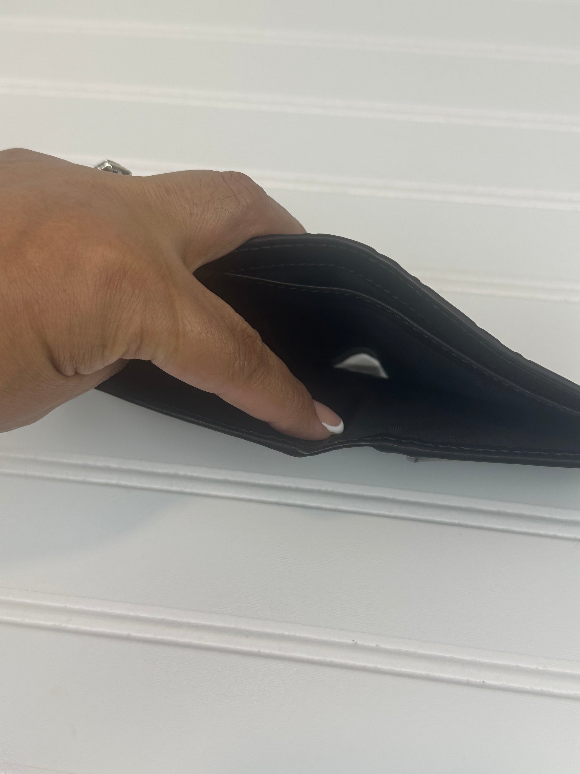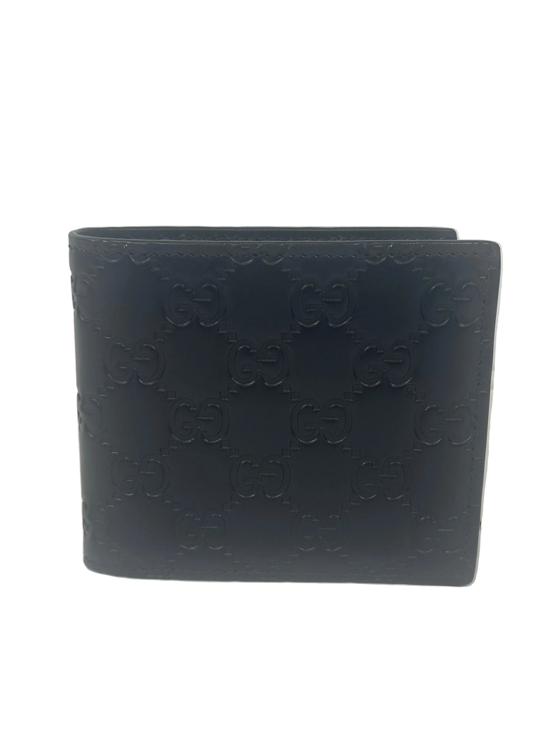Pre-owned GUCCI GG Emblem bi-fold wallet in Black Leather _231