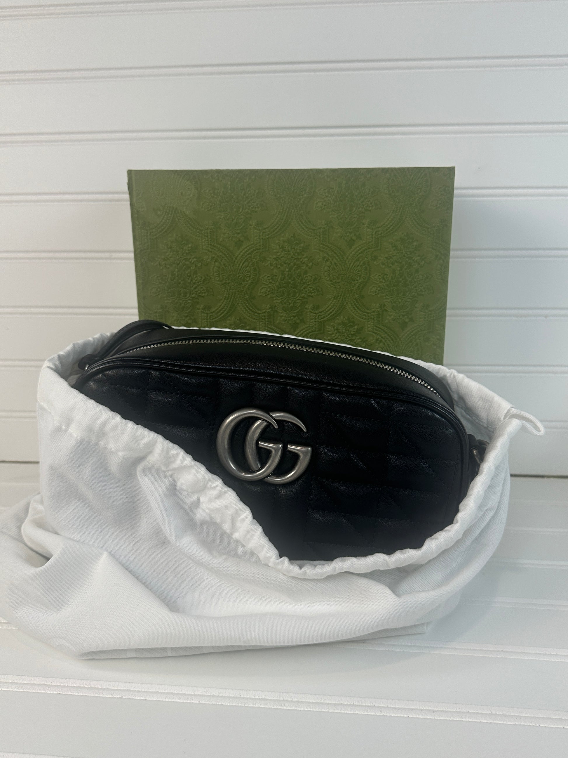Pre-owned GUCCI Marmont Black Leather with Silver Logo _215