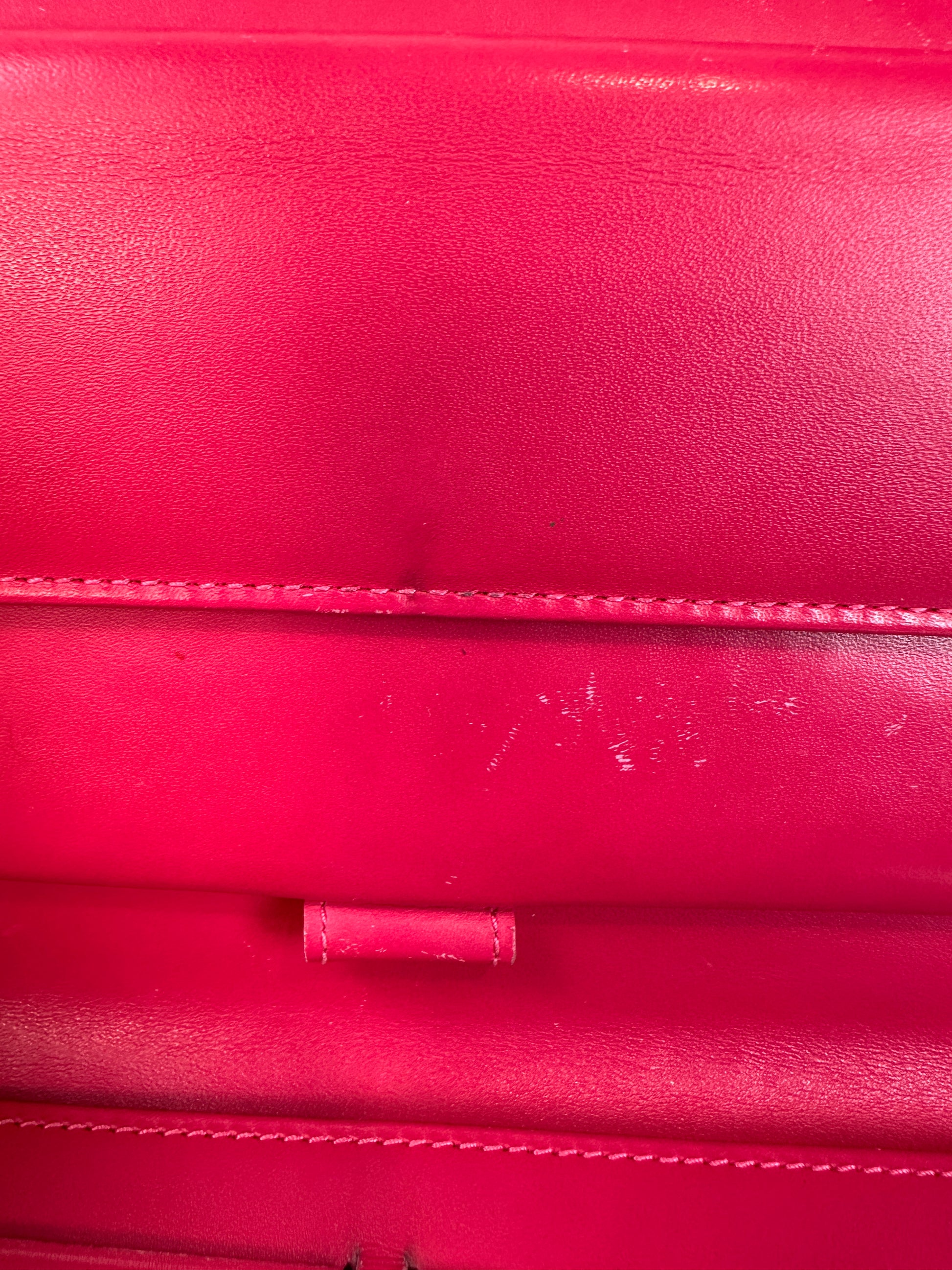This pre-owned LOUIS VUITTON wallet combines vibrant neon pink Vernis leather with the classic Monogram Empreint texture, creating a striking and elegant accessory. Accented with refined gold details, it offers both style and functionality, perfect for organizing essentials with a touch of luxury. Ideal for those who appreciate bold sophistication in timeless design.