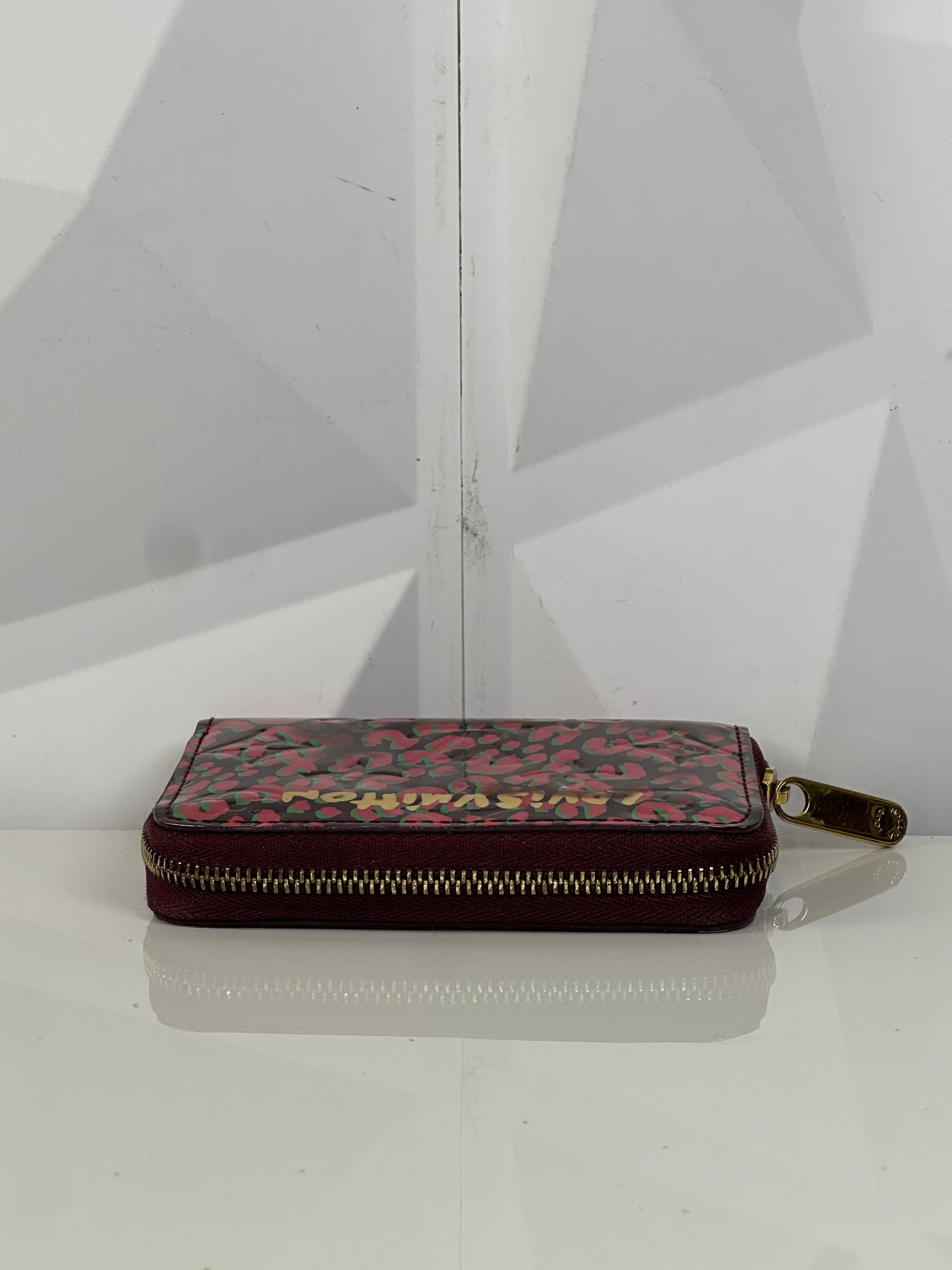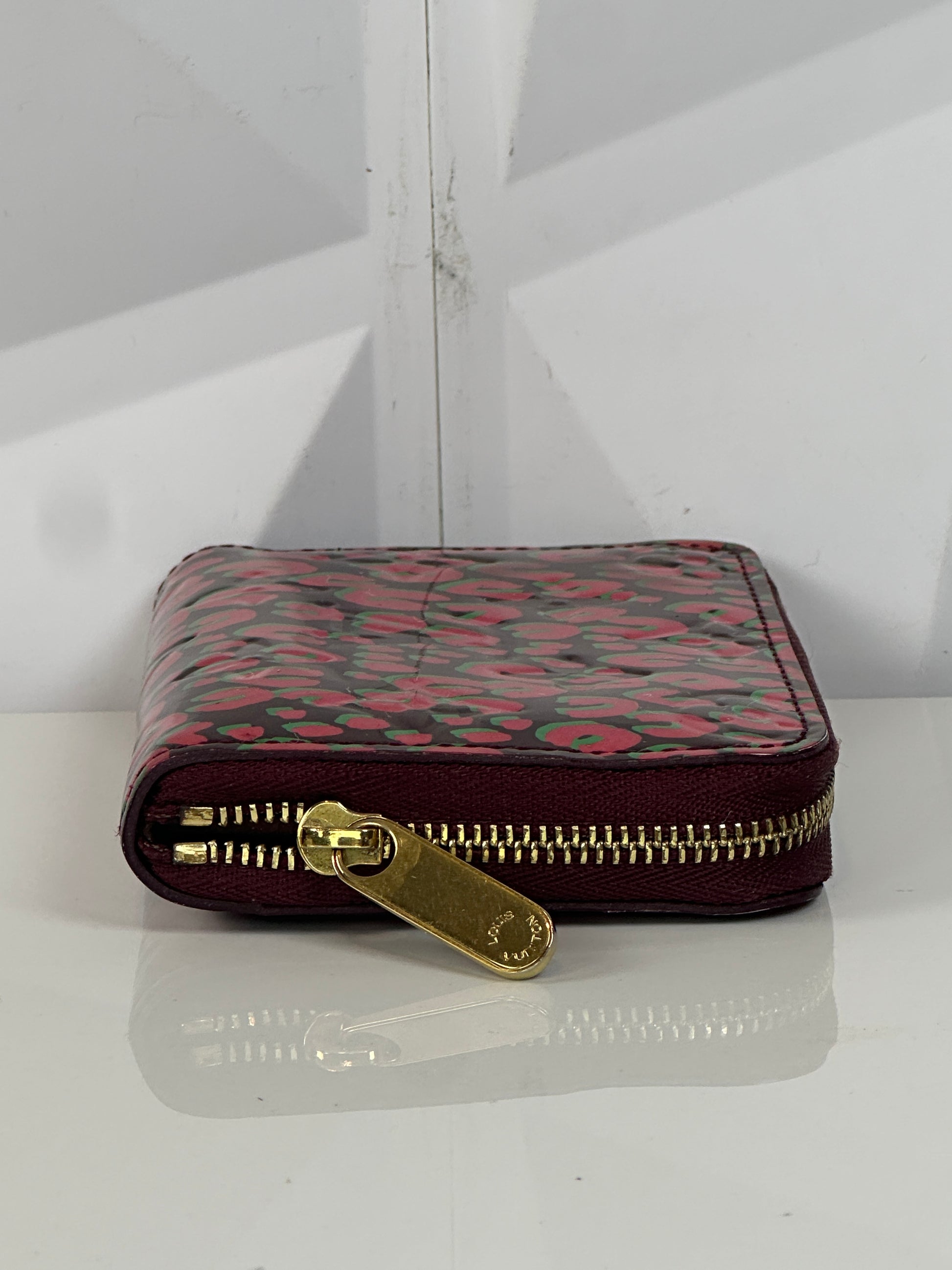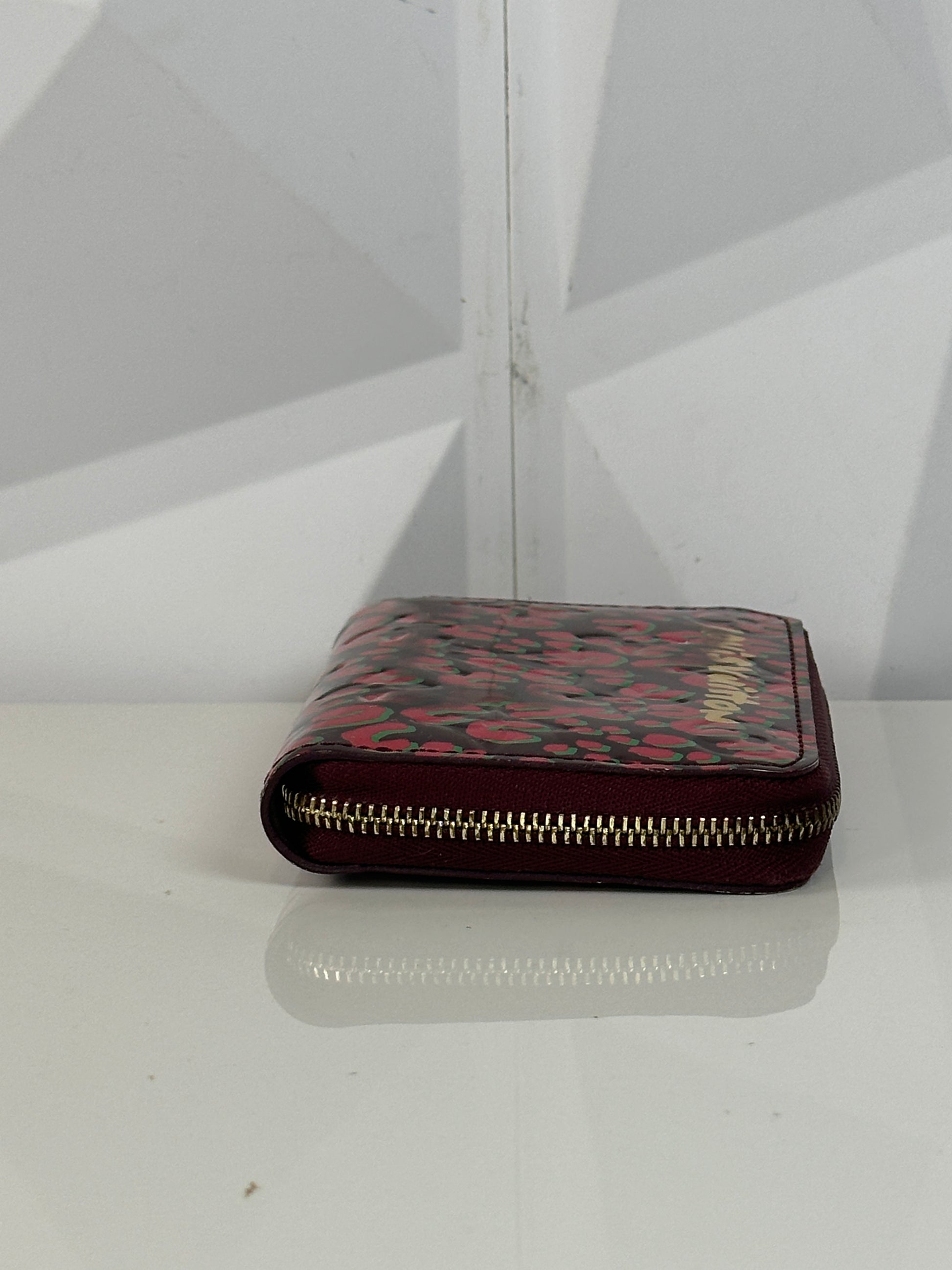 Pre-owned LOUIS VUITTON Vernis Leopard Zippy Coin Purse in Burgundy and Pink