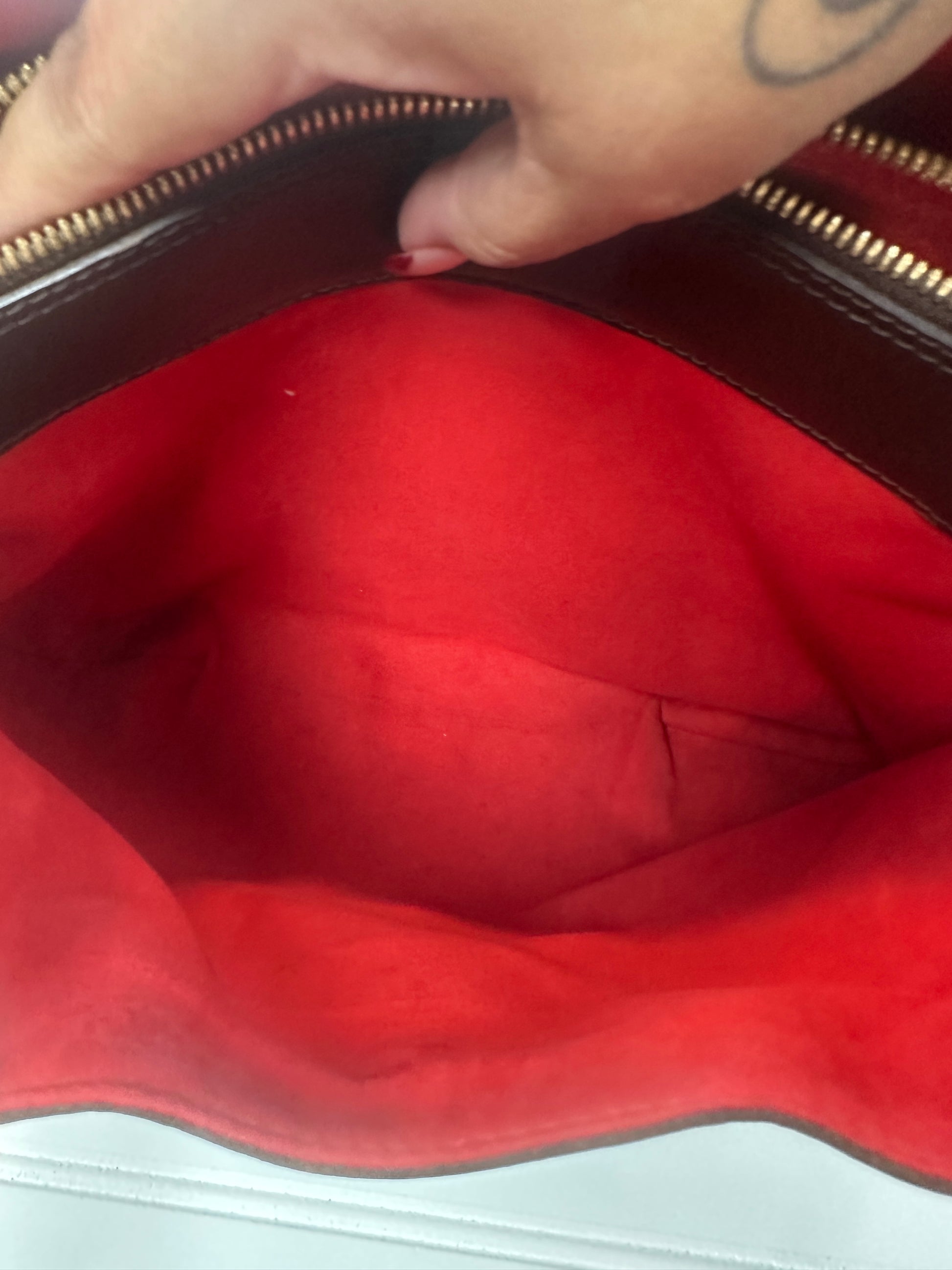 Embrace vintage luxury with this pre-owned Louis Vuitton Sistine GM Shoulder Bag in timeless Damier Ebene canvas. This generously proportioned design delivers everyday sophistication with its iconic monogram pattern and comfortable shoulder strap, perfect for carrying your essentials in style. The spacious interior makes it ideal for work, travel, or weekend adventures. Comes complete with its original dust bag for safekeeping. As an authentic pre-owned piece, you're acquiring genuine Louis Vuitton heritage at exceptional value. The subtle vintage character—including a light signature scent—speaks to its authentic provenance and adds to its desirable patina. A classic investment bag that transcends seasons and trends.